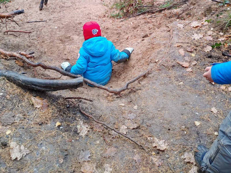 Der Wald als Turnhalle: weite Räume, unebene Böden, unterschiedlichste Hindernisse, die überklettert, übersprungen, umgangen werden müssen. Hier ist Ausdauer gefragt, ebenso wie Geschicklichkeit und Gleichgewichtssinn. Zusätzliche Anreize mit dem Schwerpunkt Bewegung setzten wir durch Aufbauten von Seilkonstruktionen, Ballspiele, Aufbau der Slackline etc.