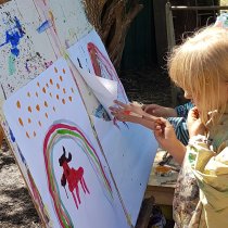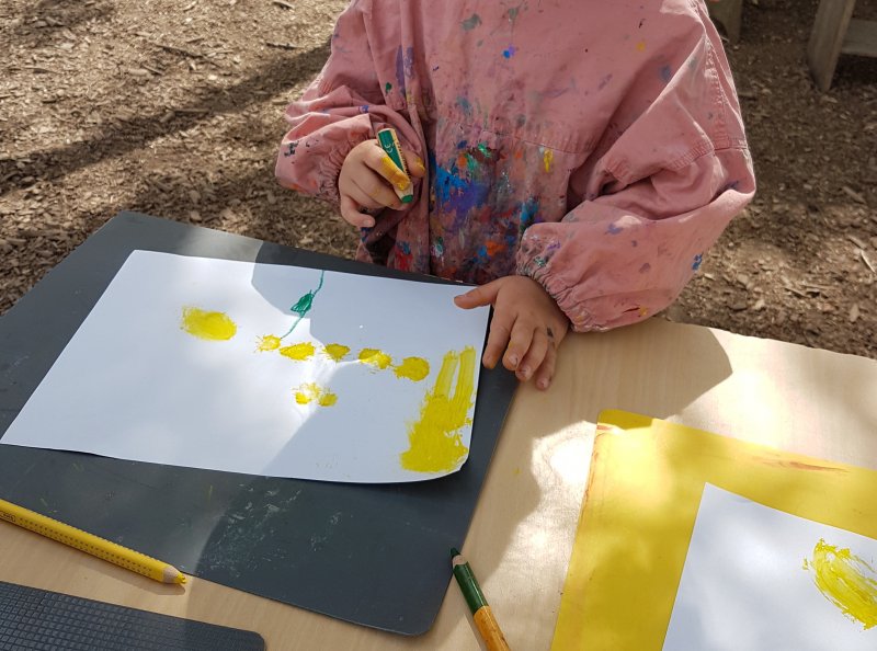 Ergänzend haben die Kinder jederzeit die Möglichkeit zu malen, kleben und schneiden. Wiesenzeiten geben außerdem die Gelegenheit sich z.B. zu verkleiden oder mit Baumaterialien zu konstruieren. Am wöchentlichen Spielzeugtag wird das Angebot durch mitgebrachtes Spielzeug erweitert.