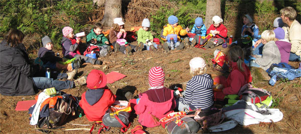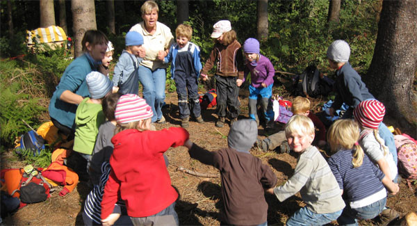 Danach ziehen die Kinder zu einem ihrer Waldplätze oder bleiben auf der Wiese.