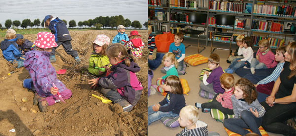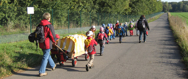 Gelegentliche Ausflüge in die nähere Umgebung, themenbezogene Besuche, z.B. eines Schäfers, eines Museums oder zur Kartoffel- und Apfelernte und auch mal ein Theaterbesuch erweitern den Erlebnisraum der Kinder.